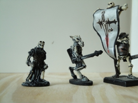 Links ein untoter Magier, rechts ein wunderschönes, noch nicht vollständig bemaltes Tiermenschenmodell von RAFM.